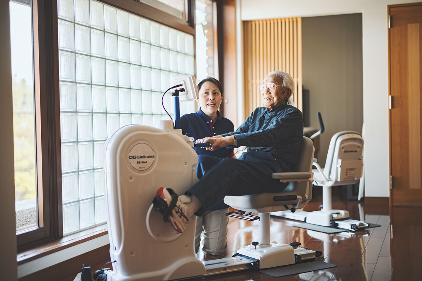 年齢を重ねると、思うように身体が動かなくなるのは自然なこと。それに逆らって、つらい運動を課しても、必ずしもその方が望む生活を送れるとは限りません。機能を改善することに目が向きがちですが、ご入居者が豊かな生活を送るために必要なことは何か、そこに重きを置いたリハビリをご提案したいと思っています。