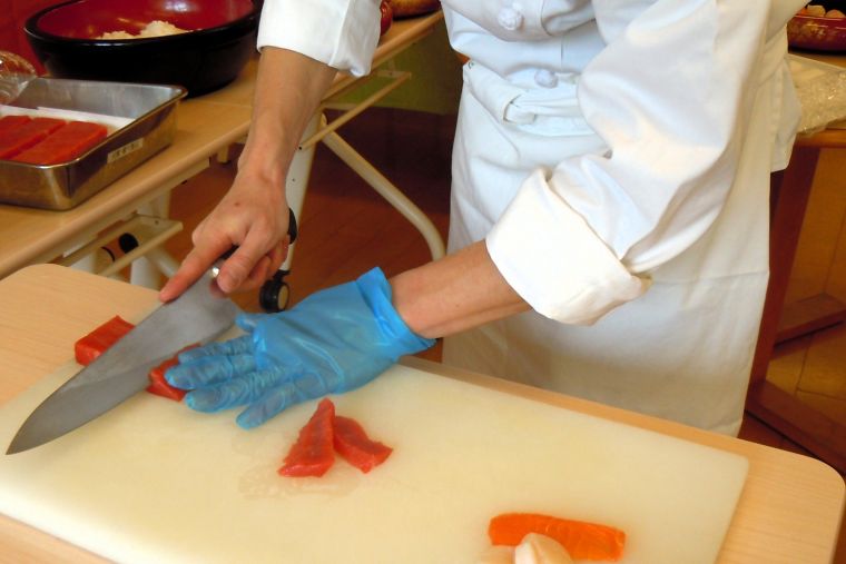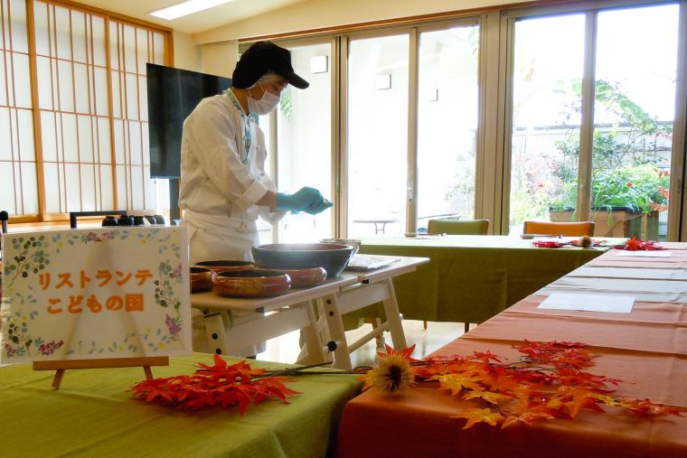 ご入居者様の目の前で調理し、出来立てのお料理をご提供するリストランテこどもの国。今回のお料理はお寿司でした。皆様久しぶりのお寿司でお代わりの手が止まりませんでした。