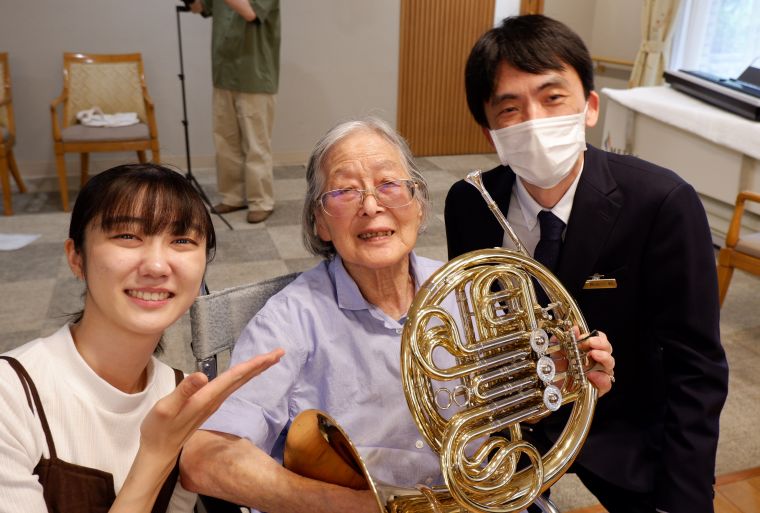 ヒルデモア駒沢公園では、9月16日にお健やかに敬老の日を迎えられたことをお祝いしました。当日は、支配人からご入居者の皆様にお花をお渡しし、最高齢の方には日頃の感謝の気持ちを込めて、感謝状もお渡ししました。昼食には、敬老のお祝御膳を召し上がって頂き、午後の部は、ピアノとホルンのコンサートを楽しんで頂きました。ご入居者は演奏に合わせ、「もみじ」や「小さい秋みつけた」「赤とんぼ」といった秋の歌を、体でリズムを取りながら、口ずさまれていました。皆様のご健康をお祈りし温かいお祝いの日となりました。