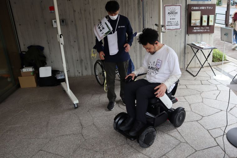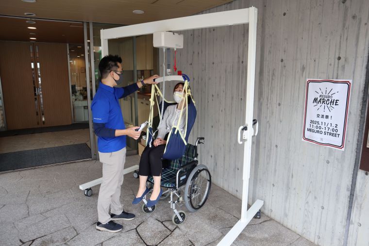 11月1日と2日の2日間にわたり、目黒通りにて目黒マルシェが開催されました。今回からヒュッテ目黒も参加させていただきました。地域の皆様に福祉をより身近に感じていただきたいと思い、高齢者の疑似体験やアップライド株式会社様にもご協力いただき、介護用リフトの体験や電動車いすの試乗などを行いました。高齢の方だけではなく、小さなお子様など多くの皆様がご参加下さりました。