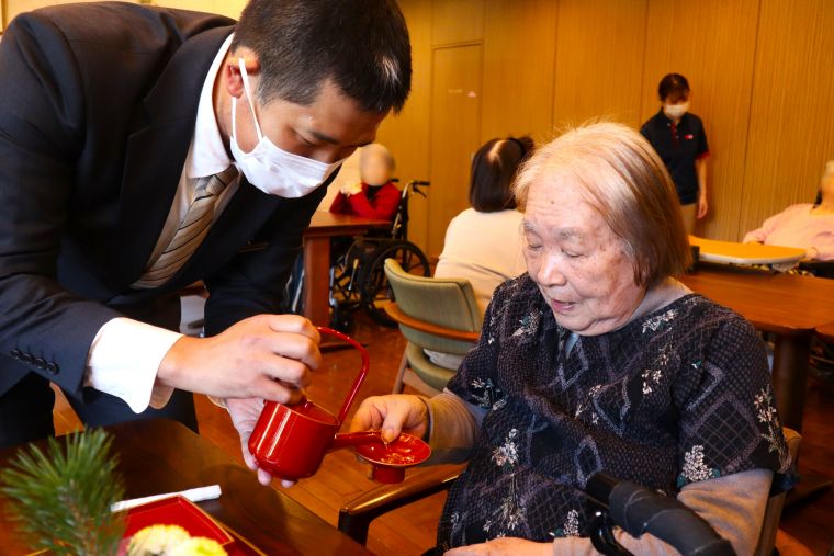 謹んで新年のお慶びを申し上げます。元日に支配人よりご挨拶とともにお屠蘇をふるまわせていただきました。本年も皆様が笑顔で心安らぐ日々を過ごせるようにお手伝いをさせていただきます。