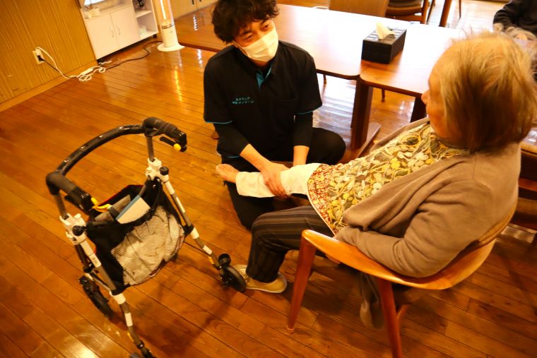 あすラック鍼灸マッサージによる、マッサージの無料体験会が開かれました。肩やふくらはぎなどのマッサージを受けながら「こりゃ気持ちいいね、あなた上手だね」と笑顔で会話されながらリラックスのひと時を過ごされておりました。