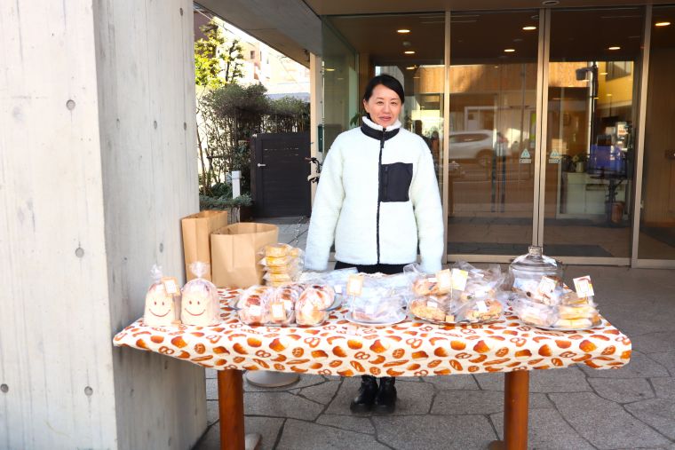 天然酵母を使用したパンを販売している「おこな」さんによる移動販売がヒュッテの玄関前にて行われました。おいしそうなパンが並び、お買い求めになられた方も「どれにしようか迷っちゃいますね」と楽しそうに選ばれておりました。