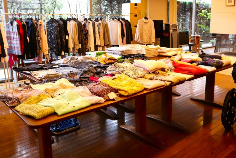 今回も「田中ニット」さんにご協力いただき、洋服の移動販売会を開催いたしました。気になったお洋服を手に取り「似合うかなぁ」と悩まれたり、ご家族の方と相談されながらお買い求めになられるなど、久しぶりのお買い物を楽しまれておりました。