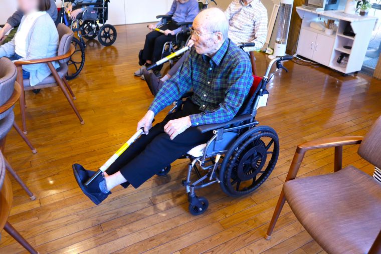 「今日は、あの先生の体操ね」とすっかりおなじみになったリハフィット体操を今月も開催いたしました。棒を使った体操に「全然足が上がらないわ」とおっしゃられるなど苦戦しながらも、真剣な表情で取り組まれておりました。