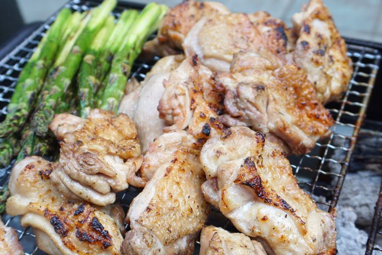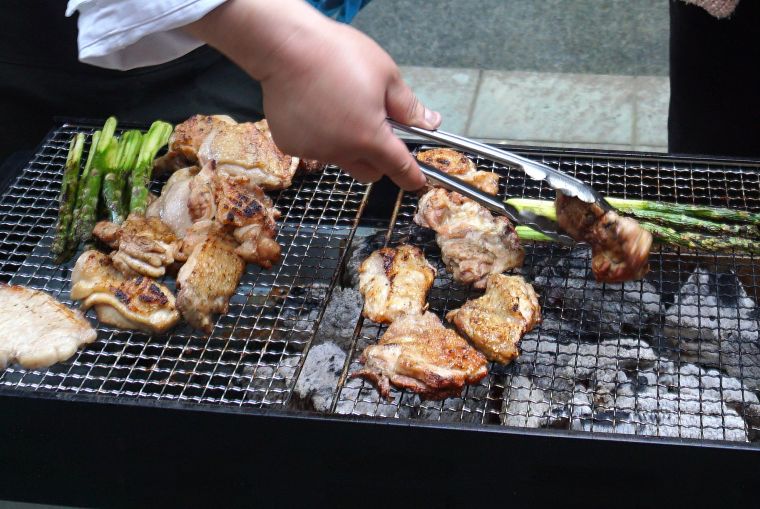 3月のライブキッチンのメニューは「炭火焼きチキン」。ダイニングのご入居者皆様のお席から見えるテラスでチキンを焼いてご提供しました。この日は肌寒く、炭火のやさしい暖かさに思わず手をのばして暖を取りながら、焼き上がりを見守ってくださるご入居者もいらっしゃいました。パチパチという音、立ち上る香ばしい煙、炭火独特の香り、どれも五感を刺激するものばかり。もちろんお味も外側はパリッと、中はふんわりと焼き上がりご入居者の皆様大絶賛の「炭火焼チキン」でした。