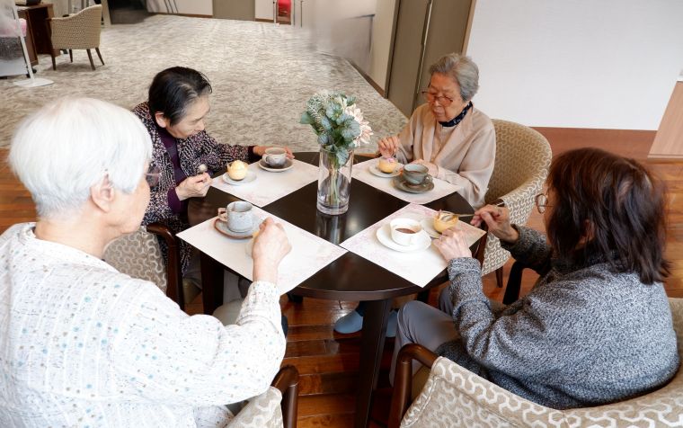 3月3日のひな祭りに、昼下がりの「ヒルデモアカフェ」を開店いたしました。お昼は桃の節句にちなんだ海鮮ちらし寿司の御膳ということもあり、「ついつい食べすぎちゃって、おなかがいっぱいだよ〜」と笑いながら、皆さまカフェへ足を運んでくださいました。近隣の洋菓子店から取り寄せた特製プリンに、お好みのお飲み物を組み合わせて召し上がると、先ほどまで「満腹だよ」とおっしゃっていた方々も、気付けばあっという間に完食。甘いものの力は偉大です。また、普段は顔を合わせる機会の少ない他フロアのご入居者同士でも、自然と交流が生まれ、外はあいにくの大雨でしたが、終始あたたかな雰囲気に包まれていました。