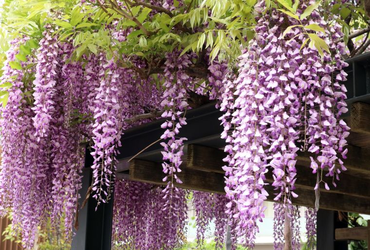 ヒルデモアたまプラーザ・ビレッジⅢの藤棚やナニワイバラが見頃になってきました。お天気のいい日には、ビレッジⅠのご入居者をお散歩へお誘いしています。満開の藤に感動のご様子のご夫婦から「昔、私が藤を好きだと言ったら、主人が藤の苗を買ってきてくれたの。今年もその藤が家でも咲いているのよ。」と、素敵なエピソードを教えていただきました。ご夫婦の会話もはずむ、楽しいひとときでした。(撮影のためマスクをはずしています。)