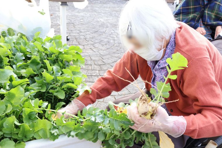 ヒルデモアたまプラーザ・ビレッジⅠの5Fでは屋上菜園で育てた人参と大根を使って、心温まるスープを作りました。種植えから栽培・収穫までお手伝いくださった皆様、そして日頃屋上庭園をご利用いただいている方々をお誘いし、スープを囲んで楽しいひとときを過ごしました。フロアを越えたご入居者同士の会話は尽きず、「良いお味ね~!」「あのお野菜たちがこうしておいしくいただけるなんて特別感あるわ♪」とたくさんの喜びのお声をいただきました。さらに、「次は何を植えるの?」と園芸に詳しい皆様から様々なアイデアも飛び出し、次回の菜園計画が楽しみです。何が育つかは・・・どうぞお楽しみに!