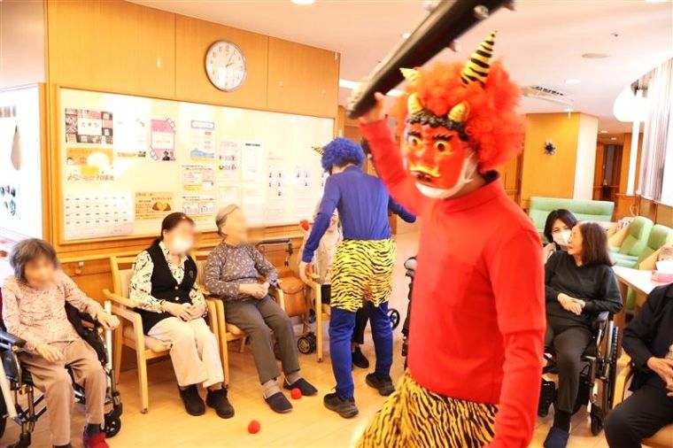 ヒルデモアたまプラーザ・ビレッジⅠでは今年も毎年恒例の節分行事を行いました。鬼が訪れる前のご入居者の皆さまは「本当に鬼が来るの?」「紅白玉を投げるの?」と少し半信半疑のご様子でした。しかし、鬼の姿が現れた途端、雰囲気は一変!皆さま一斉に紅白玉を手に取り、力強く鬼に向かって投げる姿がとても印象的でした。鬼も思わず降参し、最後は仲良く?!記念撮影をして、和やかな雰囲気で締めくくられました。今年も皆さまのもとにたくさんの「福」が舞い込みますように。