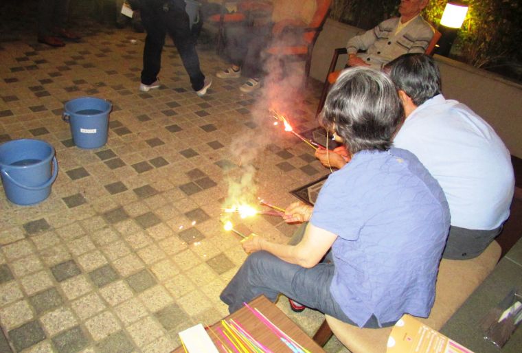 いくつになっても花火は楽しいですね。花火にまつわる思い出話にも花が咲きます。締めの線香花火では「夏ももう終わりね。夜風が涼しくなった」と火玉の移ろいを見つめていらっしゃいました。タイトルにした線香花火の玉名にも情緒ありますね。