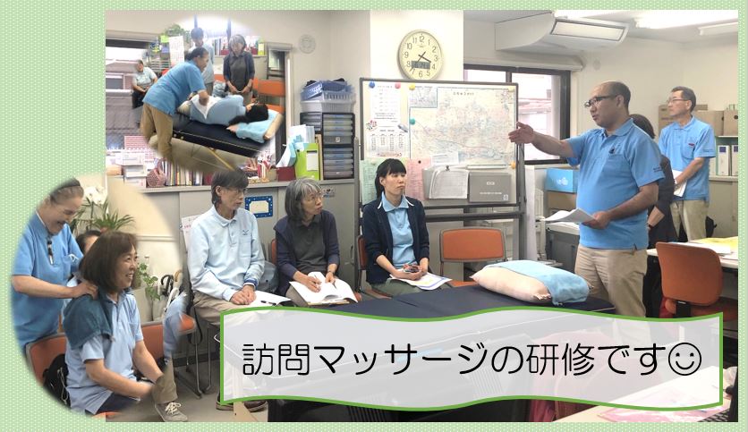 訪問マッサージについての研修でしたが、似たサービスの訪問リハビリと比較しながら学びを深めました!