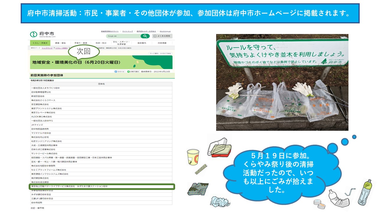 朝の府中駅周辺を清掃活動し、地域に貢献