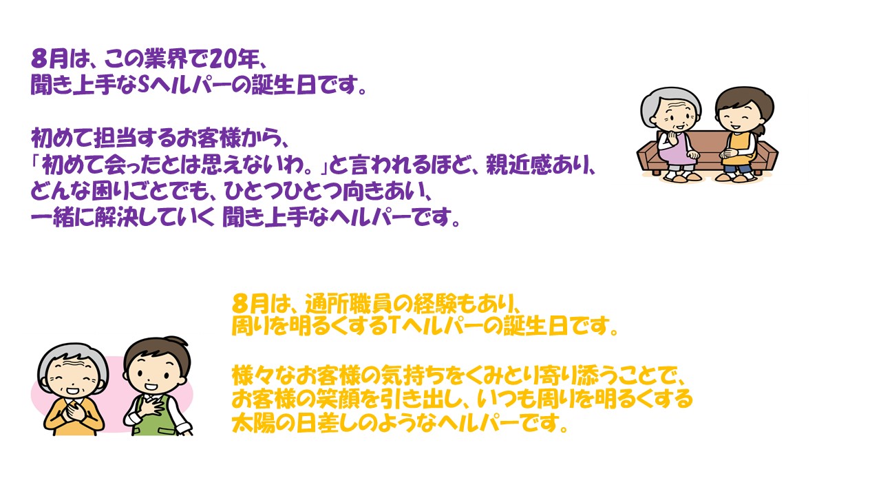 8月生まれのヘルパーです。