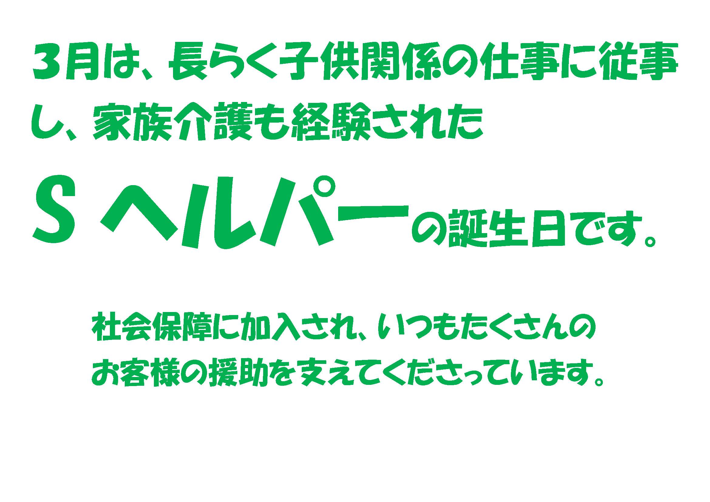 3月生まれのヘルパーです