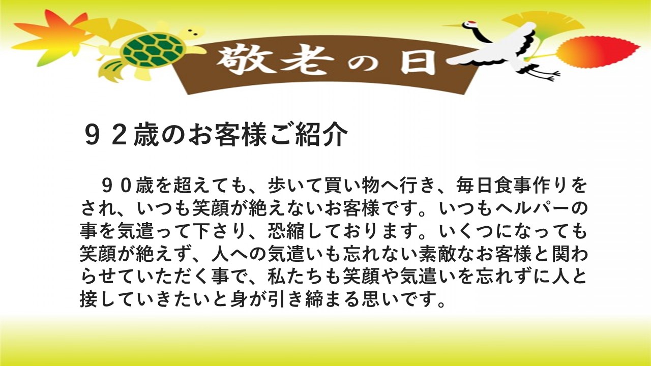 TOP > お知らせ&トピックス > 祝 敬老の日