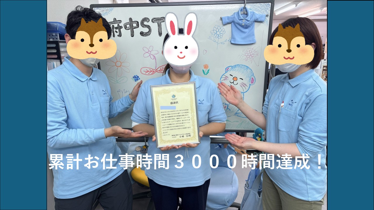 TOP > お知らせ&トピックス > 累計お仕事時間3000時間達成