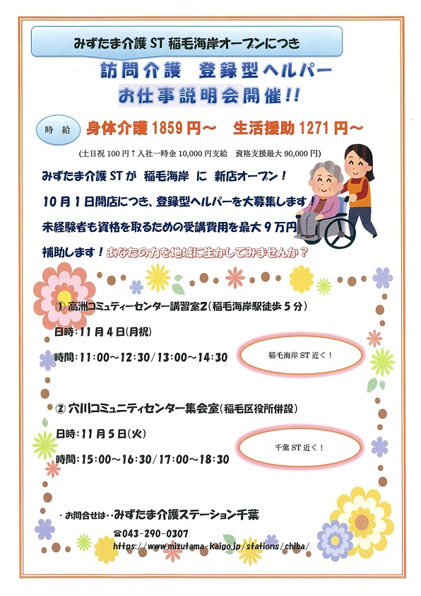 オープン直後の稲毛海岸ステーションと、千葉ステーション合同開催のお仕事説明会を開催します!