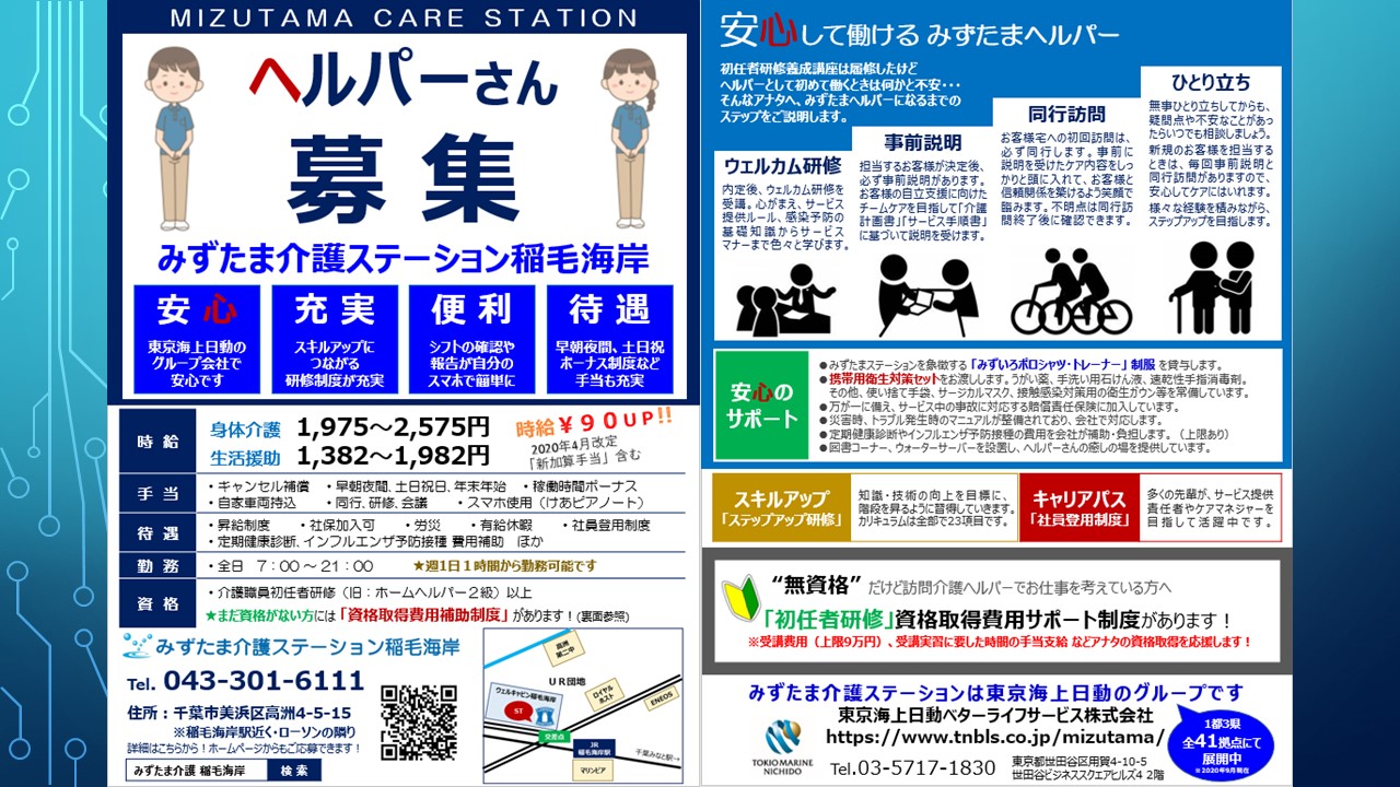 稲毛海岸ステーション ヘルパーさん大募集中!!