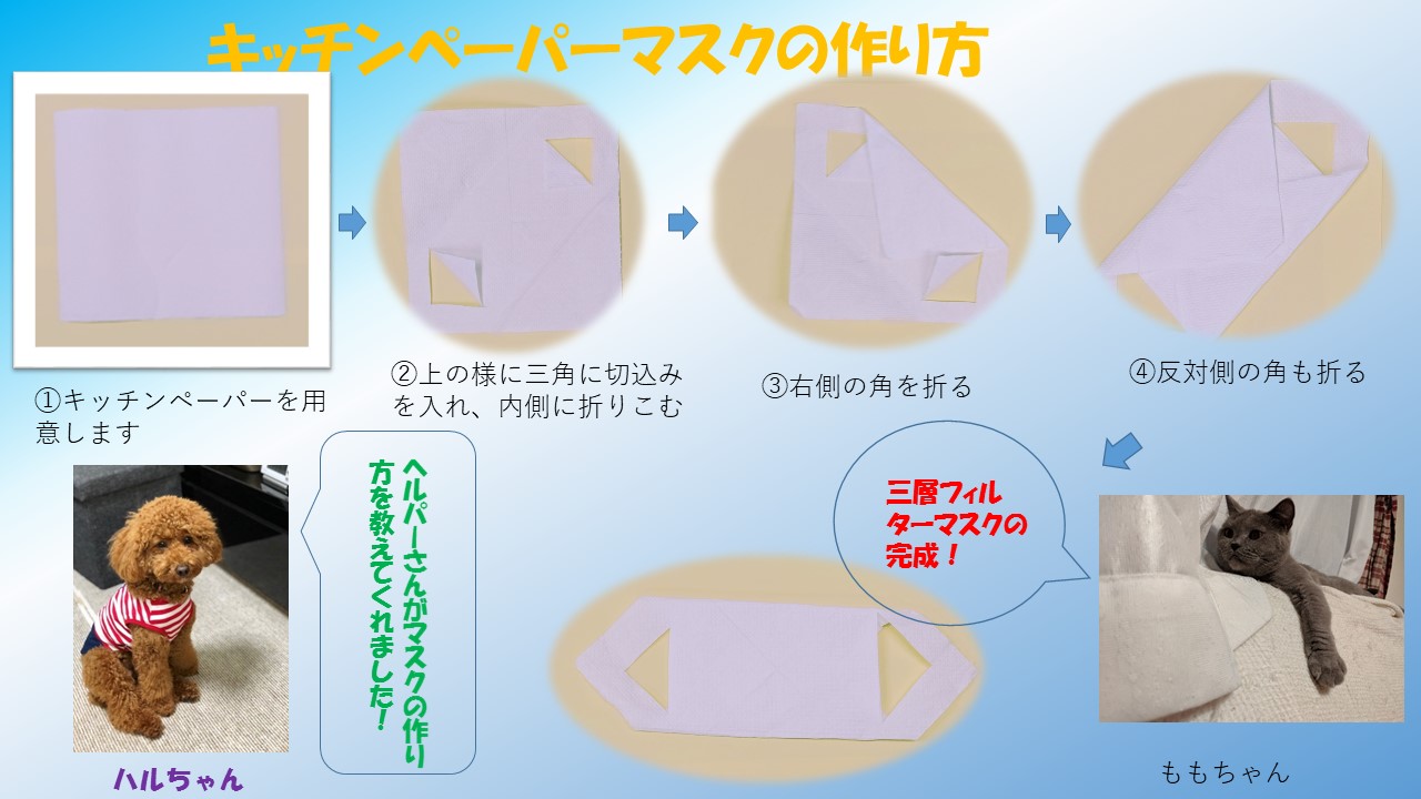 TOP > お知らせ&トピックス > ペーパータオルを使ったマスクの作り方をご紹介します!