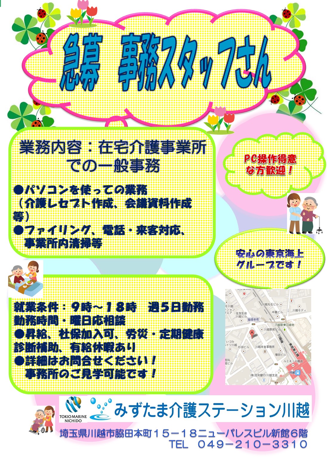 TOP > お知らせ&トピックス > 急募!事務スタッフさん