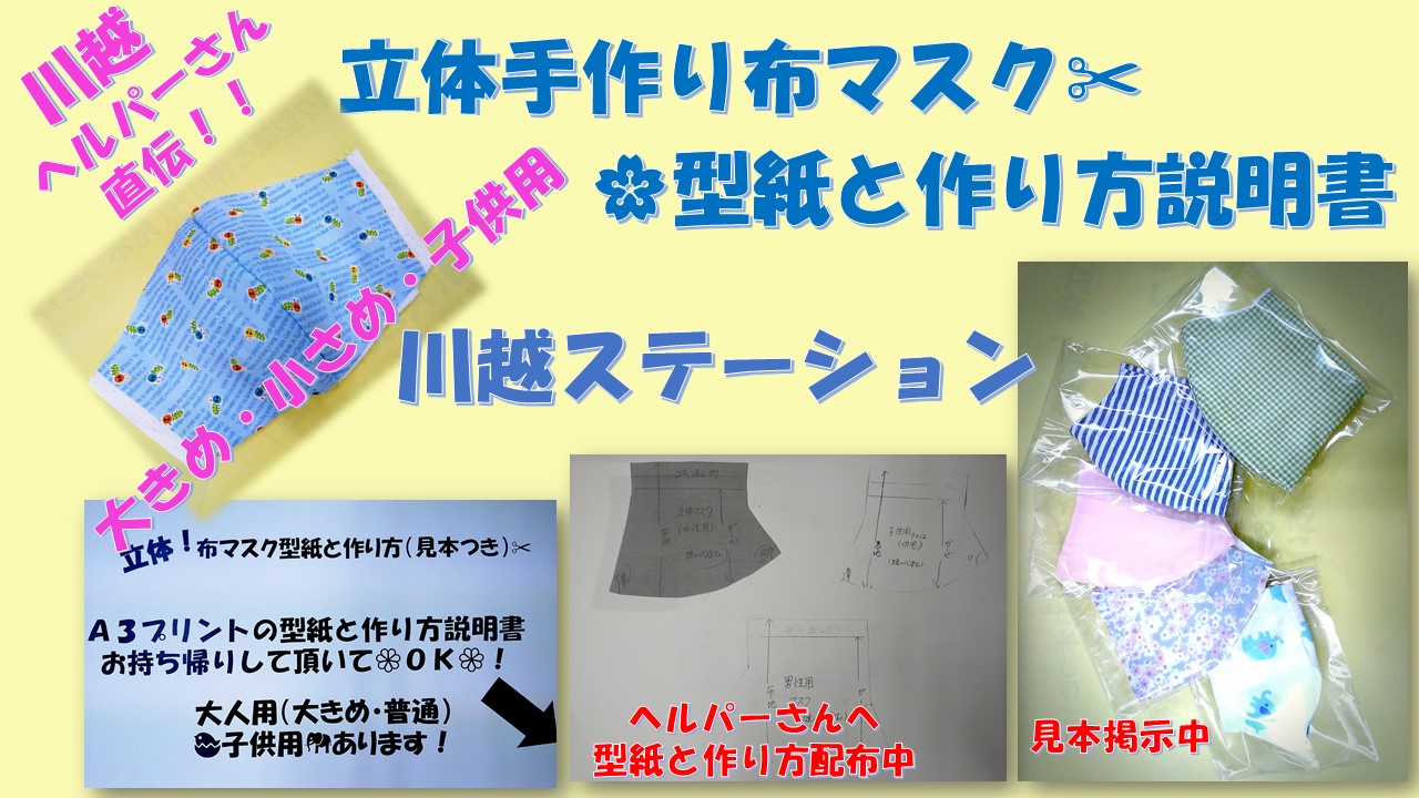 川越ステーションのヘルパーさんから立体布マスク型紙等を頂きました!