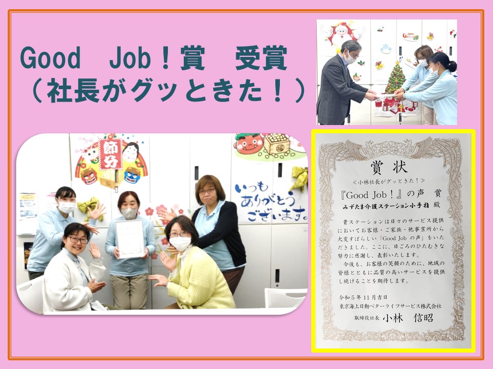 と思った支援に対して『Good Job!』賞は3か月に1回表彰することをしています。
