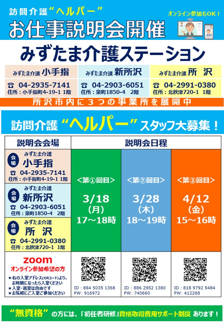TOP > お知らせ&トピックス > 小手指ステーション🌸ヘルパーさん大募集企画