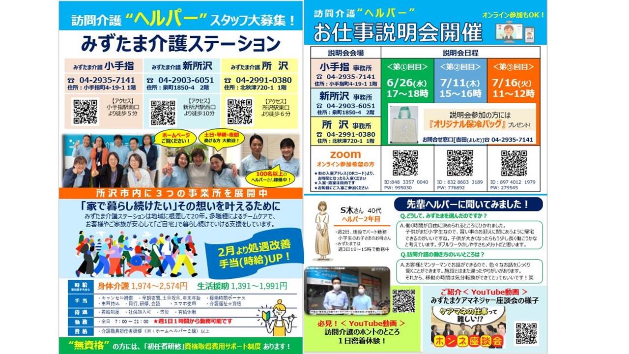 TOP > お知らせ&トピックス > 所沢市内みずたま介護3ステーション お仕事説明会開催
