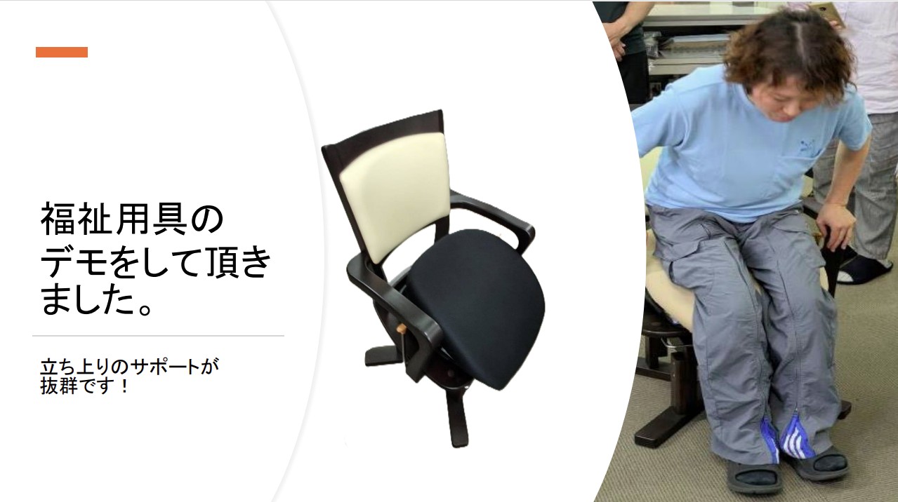 TOP > お知らせ&トピックス > 居宅MTGで福祉用具のデモをして頂きました!