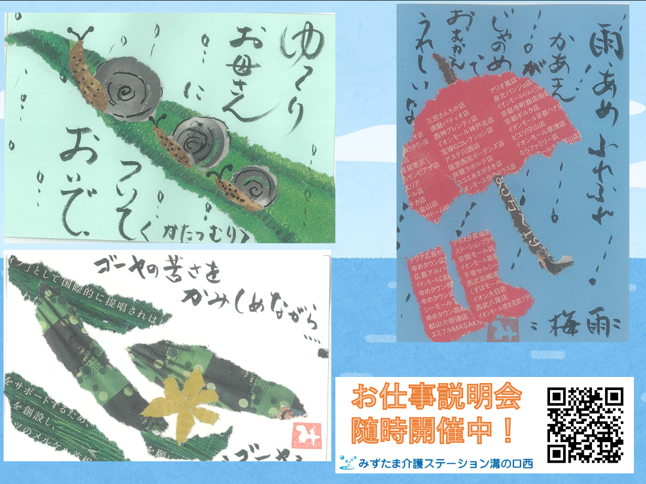 ヘルパーさん作のちぎり絵が季節を彩っています
