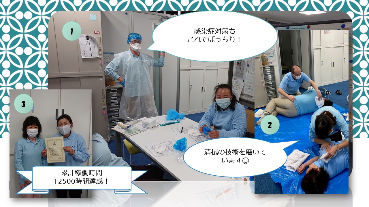 感染症対策・清拭の勉強会&累計稼働実績12500時間越えヘルパーさんの表彰☺
