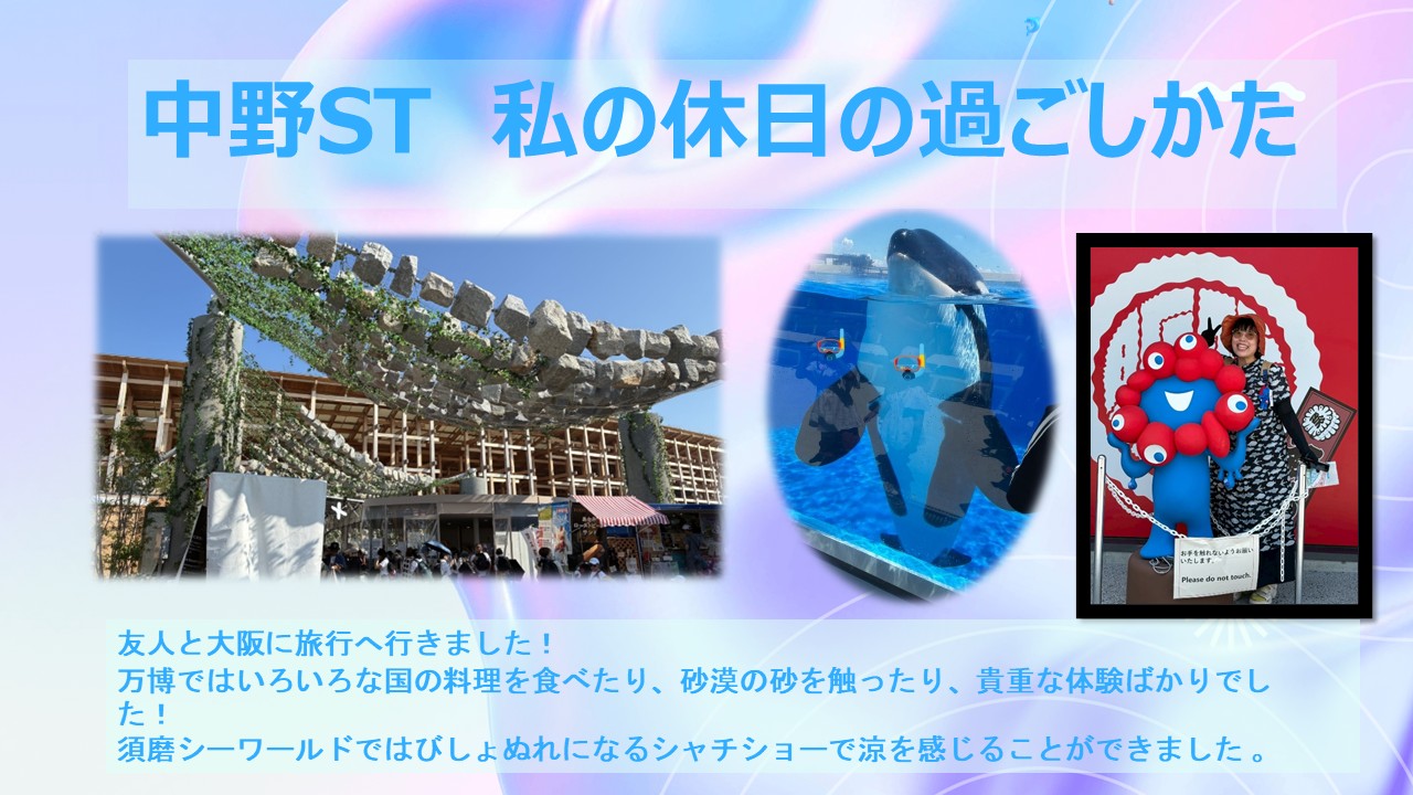 TOP > お知らせ&トピックス > 中野ST私の休日の過ごし方