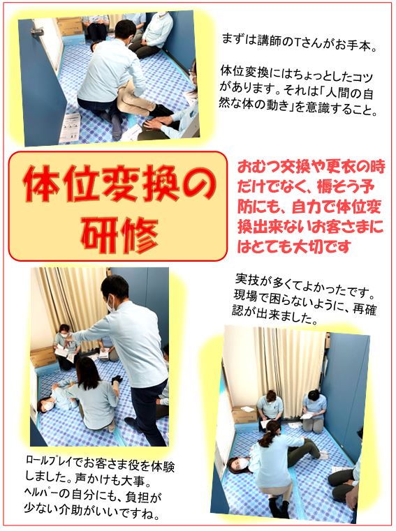 TOP > お知らせ&トピックス > 体位変換の研修を行いました