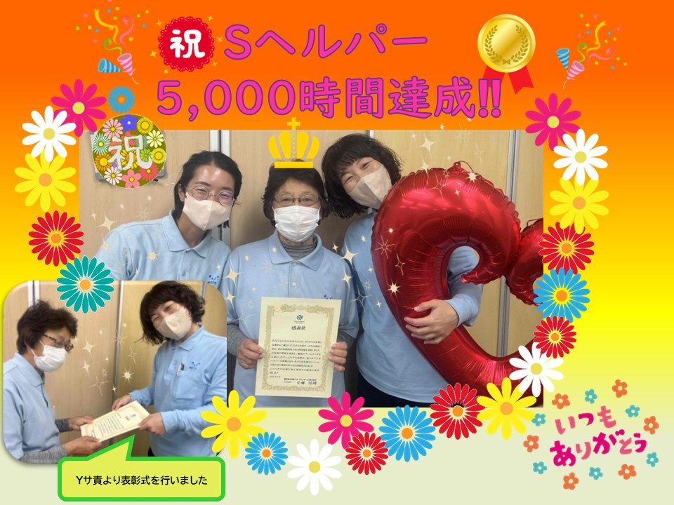 TOP > お知らせ&トピックス > Sヘルパー5000時間達成!!