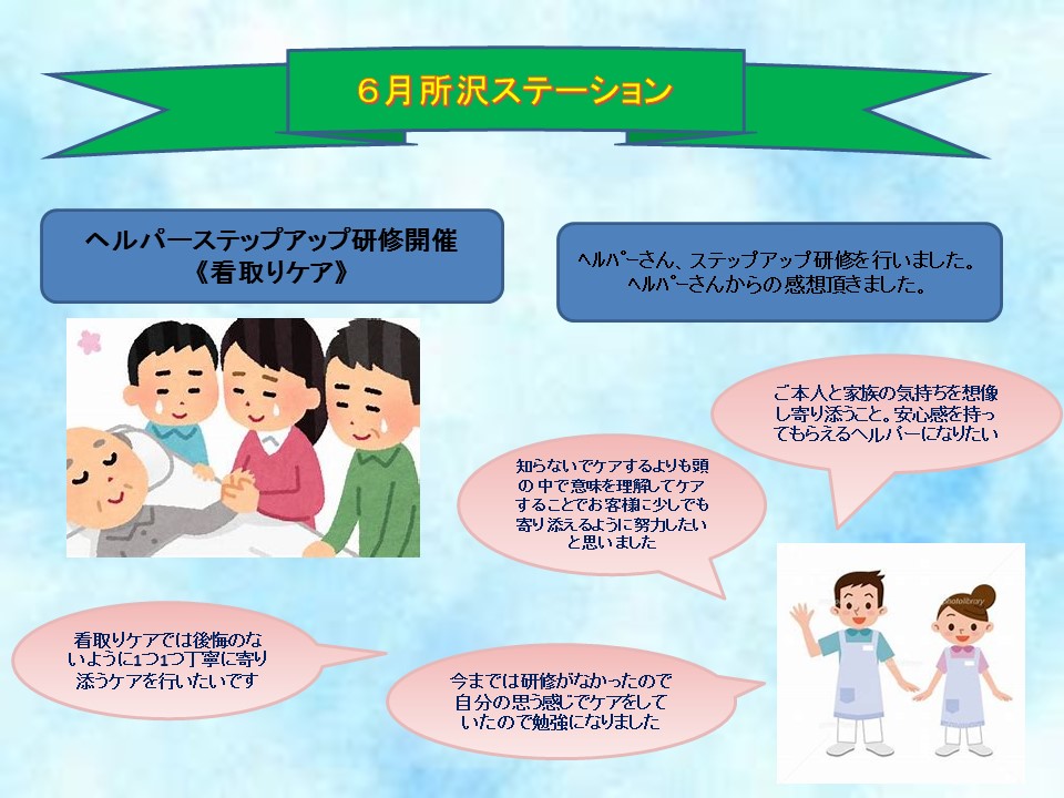 TOP > お知らせ&トピックス > ヘルパーステップアップ研修開催(看取りケア)